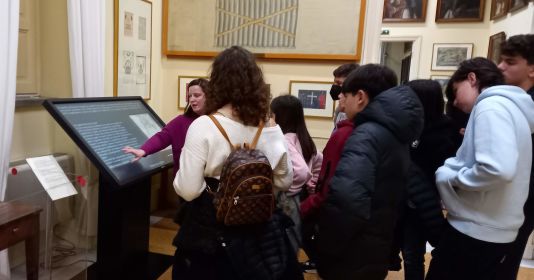 Στα πλαίσια του πολιτιστικού προγράμματος του σχολείου μας «Αναζητώντας τον Ρήγα Φεραίο στην Τέχνη» η ομάδα των μαθητών/ιών συνοδευόμενη από τους εκπαιδευτικούς κ. Μπράτσο Γεώργιο και Λασκαρίδου Νικολέττα πραγματοποίησε την Πέμπτη 23 Ιανουαρίου 2025 τις προγραμματισμένες επισκέψεις του προγράμματος. Αρχικά, η ομάδα επισκέφτηκε τα Προπύλαια του Πανεπιστημίου Αθηνών για να μελετήσει τον ανδριάντα του Ρήγα Φεραίου δια ζώσης (τεχνοτροπία, ύφος, ενεπίγραφα στοιχεία). Κατόπιν, παρακολούθησε μία σύντομη παρουσίαση της αίθουσας τελετών του Κεντρικού κτιρίου του Πανεπιστημίου.