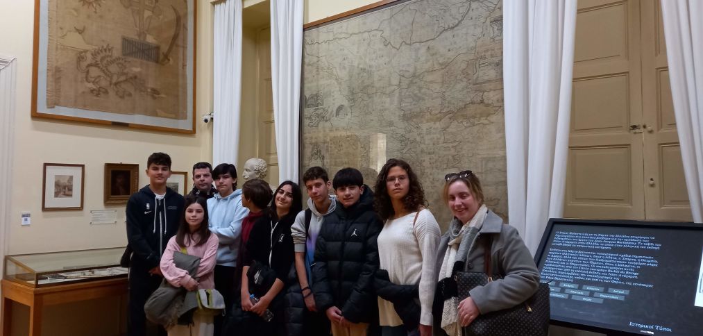 Έπειτα, η ομάδα μετέβη στο Εθνικό Ιστορικό Μουσείο, το οποίο στεγάζεται στο Μέγαρο της Παλαιάς Βουλής με σκοπό να δει από κοντά τη Χάρτα του Ρήγα που φιλοξενείται στη μόνιμη έκθεση του μουσείου. οι μαθητές ενημερώθηκαν για τη λειτουργία του διαδραστικού πίνακα με συγκεντρωμένες όλες τις πληροφορίες σχετικά με τη Χάρτα, ενώ μπόρεσαν να συλλέξουν μόνοι τους χρήσιμα ιστορικά δεδομένα από την ψηφιακή εφαρμογή. Η ομάδα είχε την ευκαιρία να περιηγηθεί στους χώρους του μουσείου καθώς και στην αίθουσα της ολομέλειας της Παλαιάς Βουλής.